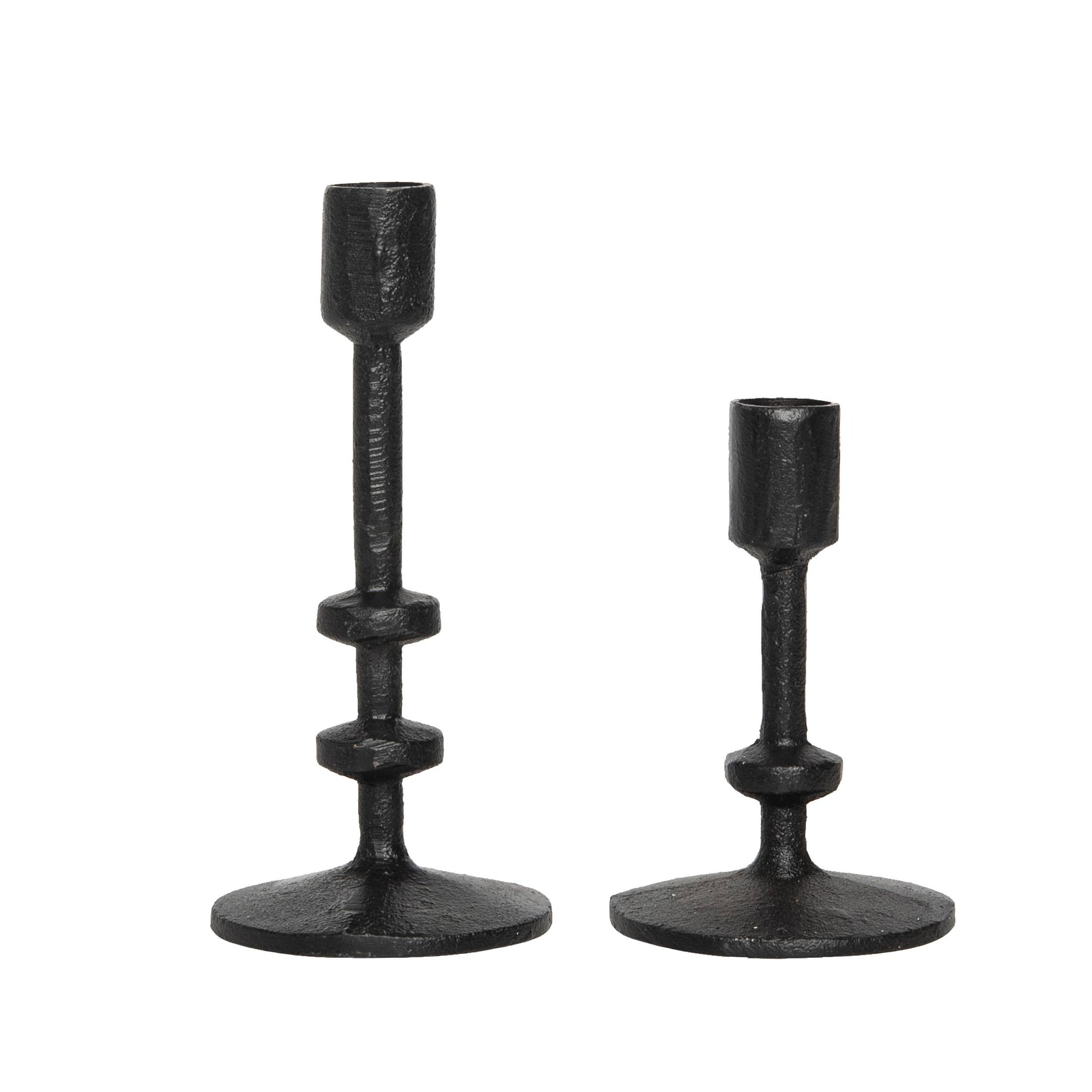 Set of 2, matte black iron candle holders