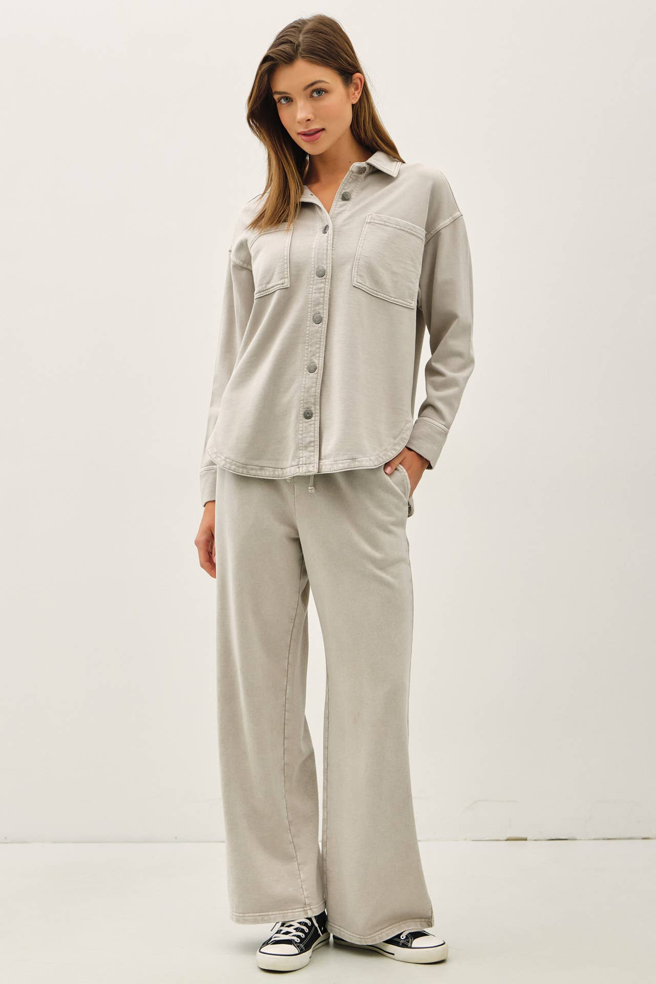 The Robbie Shacket is a lightweight cotton button-down that combines the comfort of a shirt with the warmth of a jacket. Perfect for layering, it offers a casual, breathable option for cooler days without feeling heavy.