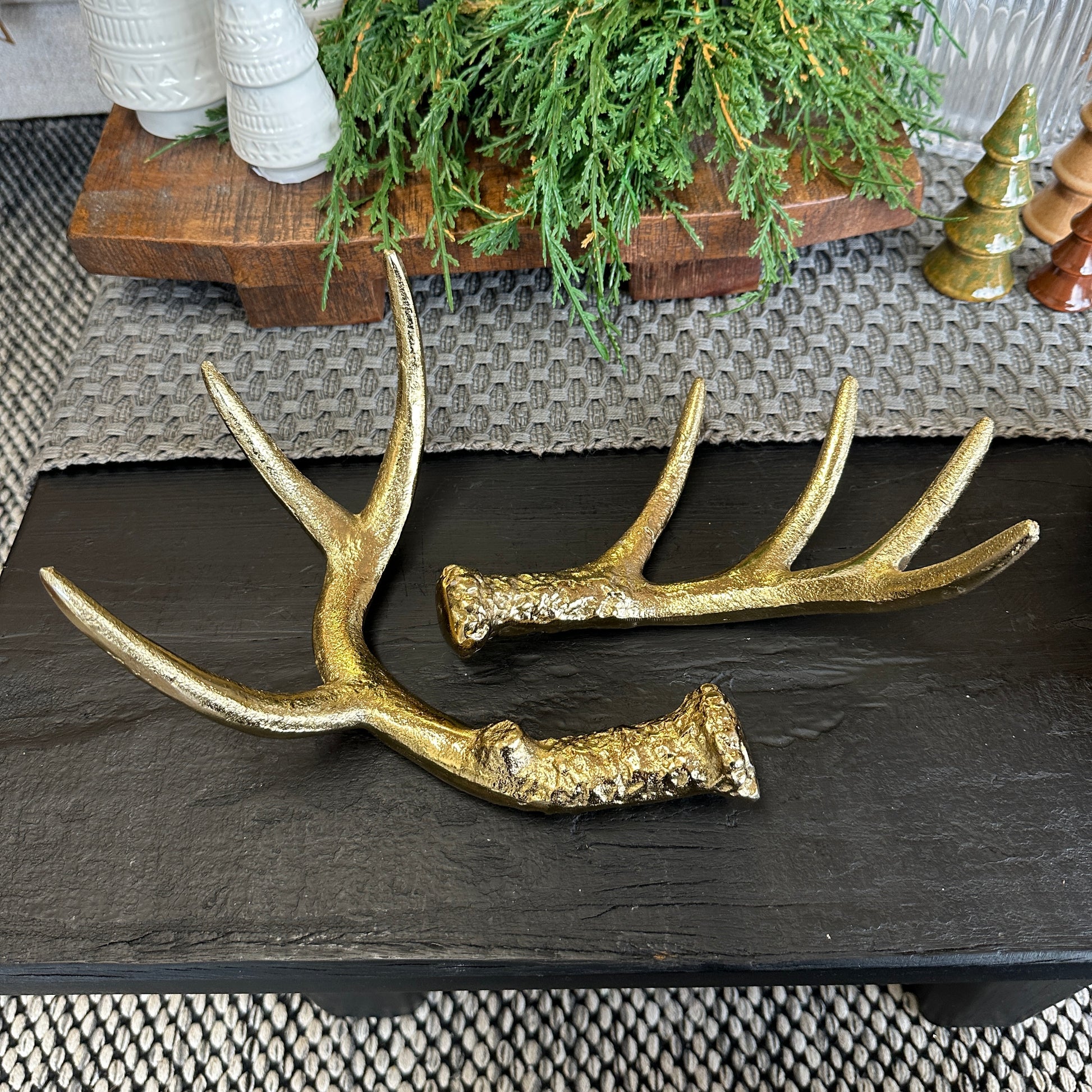 Add some festive charm to your home with our Gold Metal Antler. Perfect for the holiday season, these metal antlers will add a touch of elegance to any room. Create a warm and inviting atmosphere while also adding a stylish statement piece to your decor.