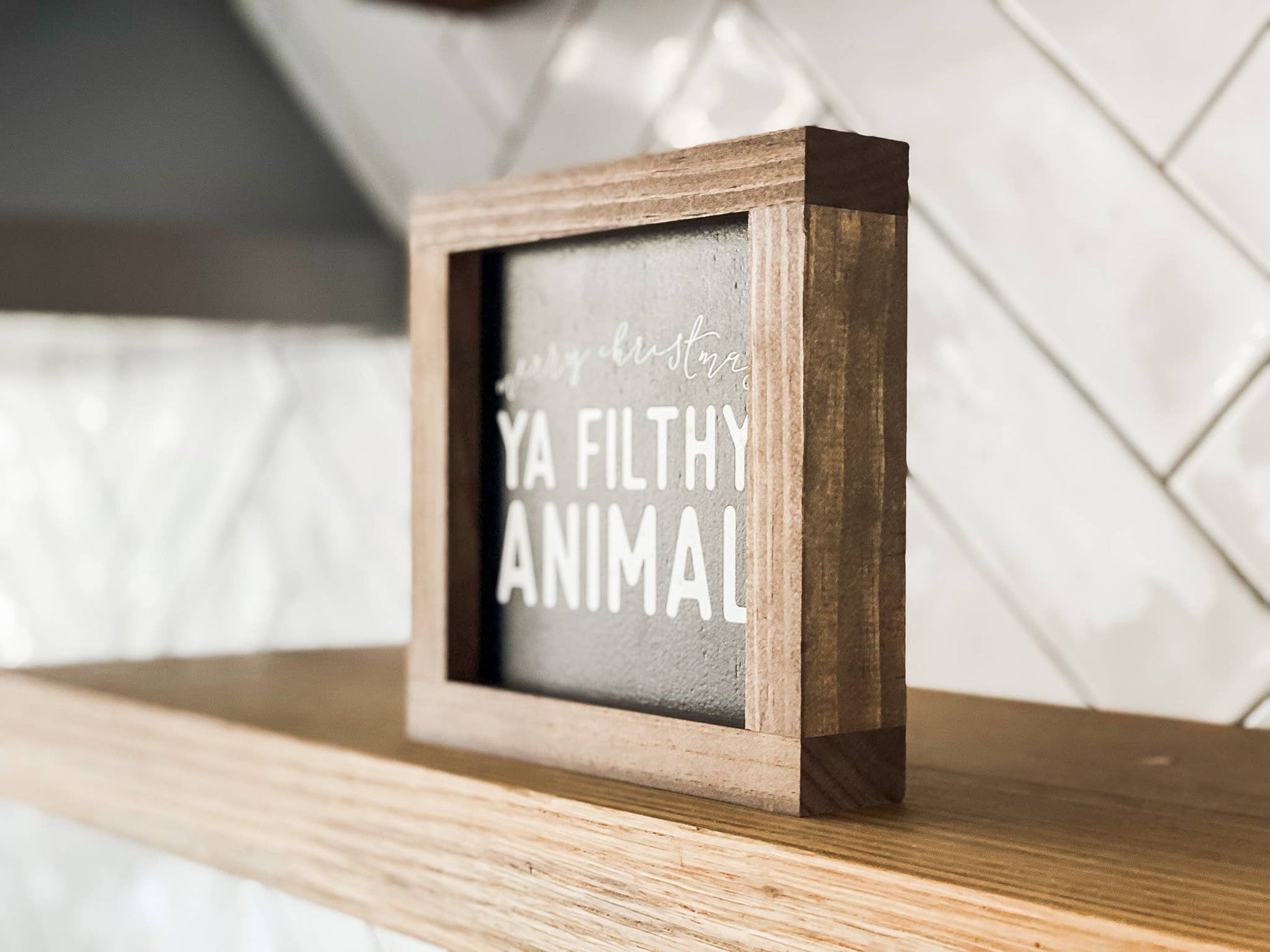 Celebrate the holiday season with our "Merry Christmas Ya Filthy Animal" block sign. Perfect for adding a touch of humor to your home décor. Made with a solid wood frame and is proudly handcrafted in Wisconsin. Spread some Christmas cheer and laughter with this fun and festive sign.