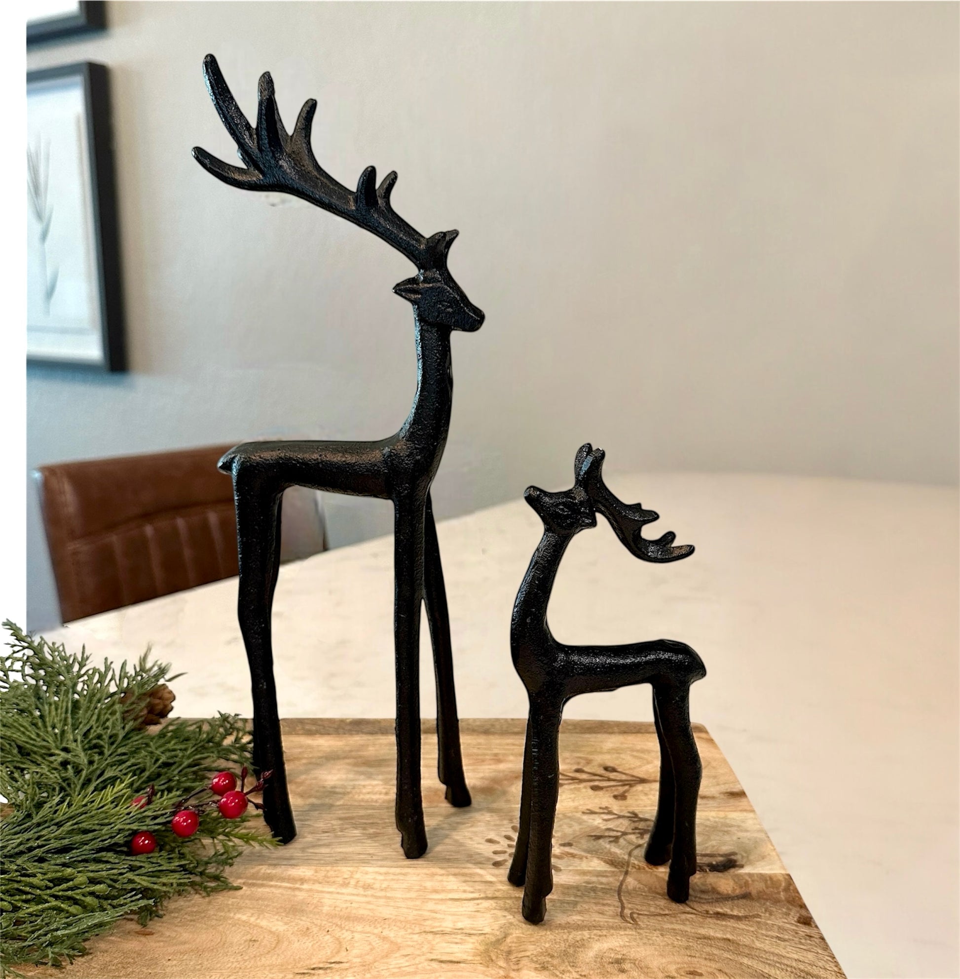 Featuring a sturdy cast iron and a classic matte black finish, these are a perfect centerpiece for your table or a delightful accent on your mantle. This timeless piece brings warmth and festive spirit to any room.